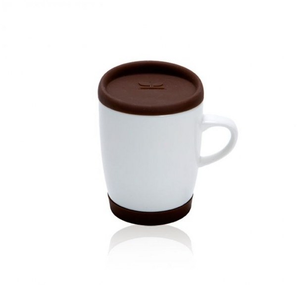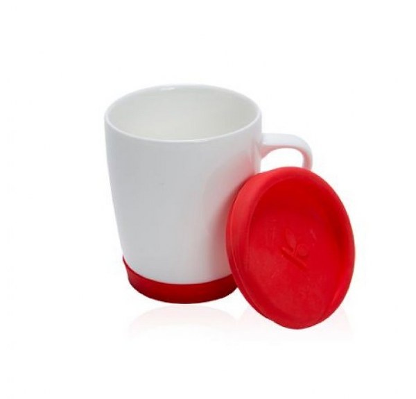 ספל פורצלן עם מכסה ותחתית עשויים סיליקון
