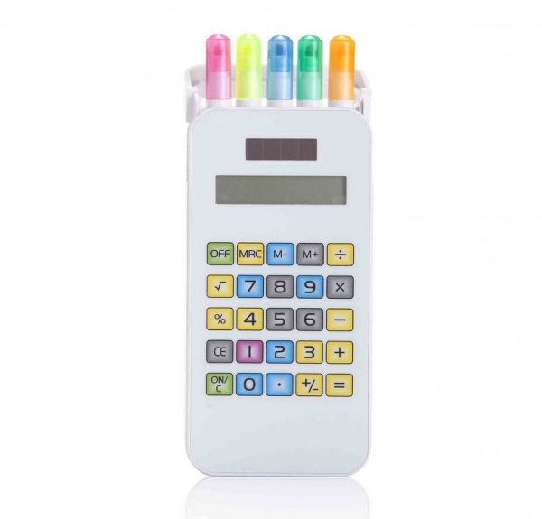 מחשבון צבעוני עם סט 5 מרקרים נשלפים